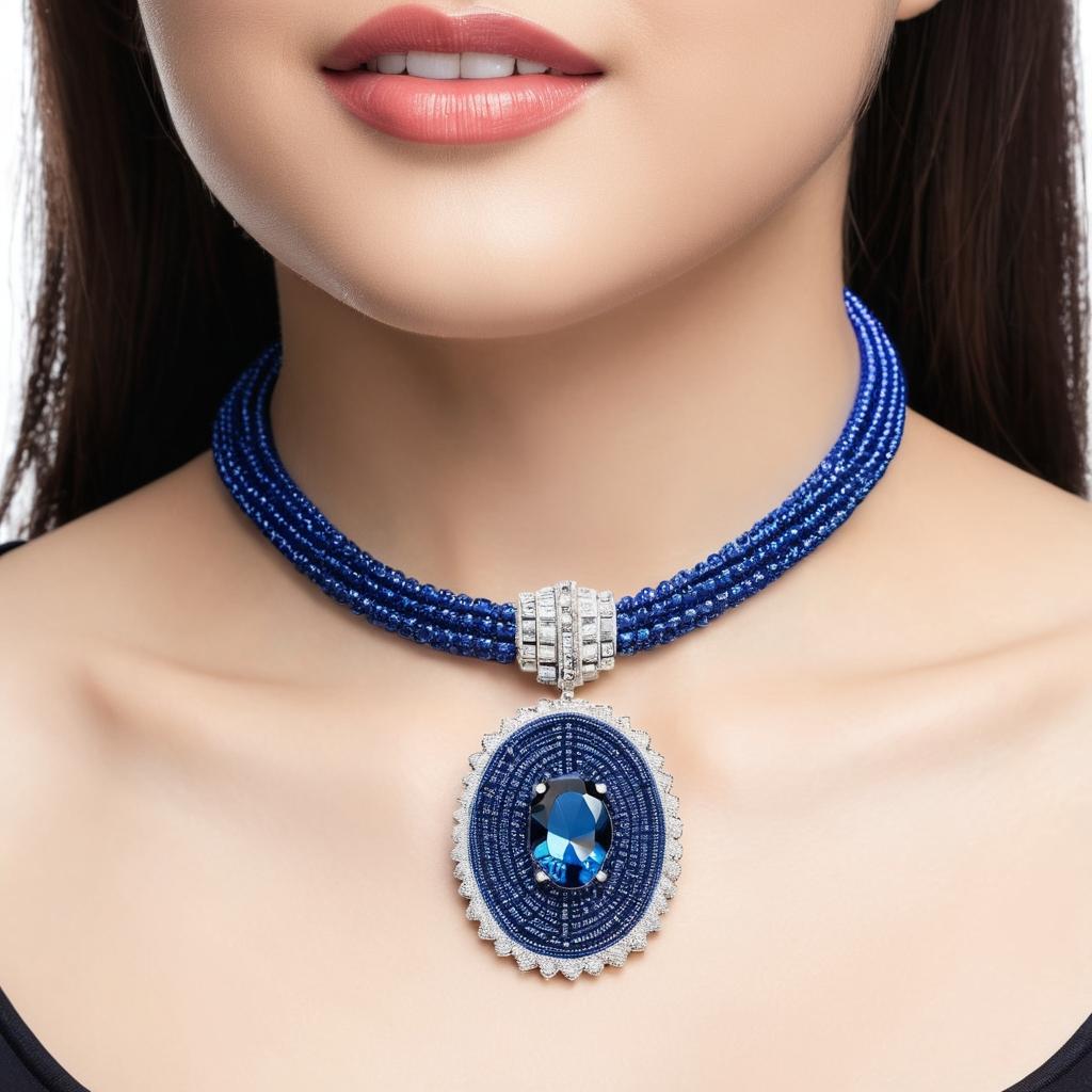 可以从这款项链中提取蓝色和银色的配色灵感,将其转化为串珠饰品。在设计过程中,选择蓝色施华洛世奇水晶和银色珠子,结合几何排列,创造出一个既现代又优雅的串珠设计。